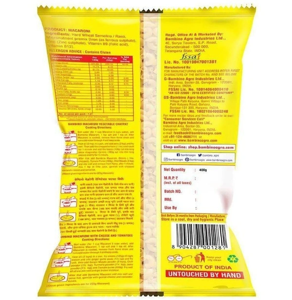 Bambino Elbow Macaroni Pasta 400 g