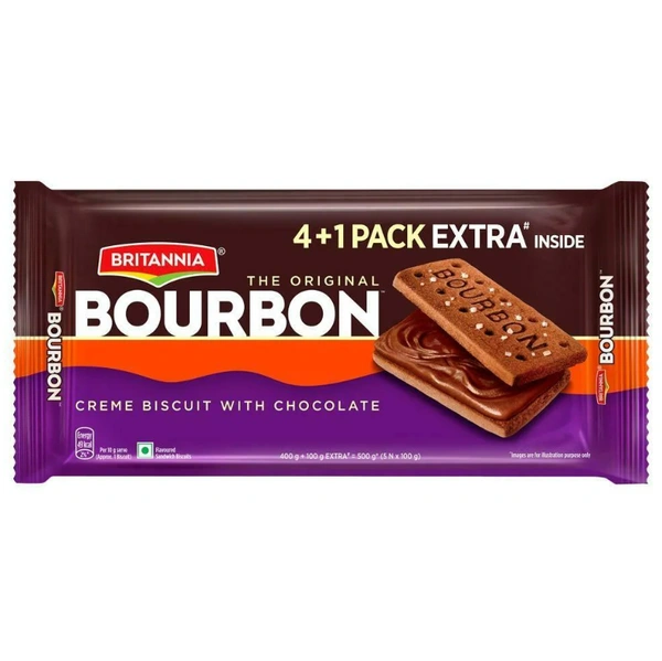 Britannia Bourbon Cream Biscuit With Chocolate 500 g (4 + 1 Pack Extra Inside)