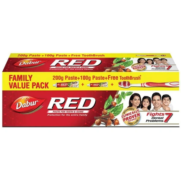 Dabur Red Toothpaste (200+ 100) g (With Free Toothbrush)