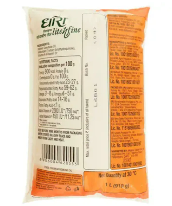 Dhara Lite N Fine Refined Soyabean Oil 1 L