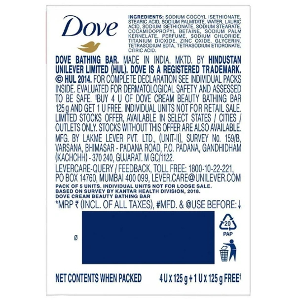 Dove Cream Beauty Bathing Bar 125 g (Buy 4 Get 1 Free)