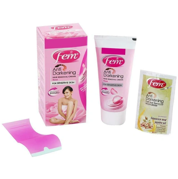 Fem Rose Anti Darkening Hair Removal Cream 40 g (With Anti Darkening Moisturizer Sachet 15 g)
