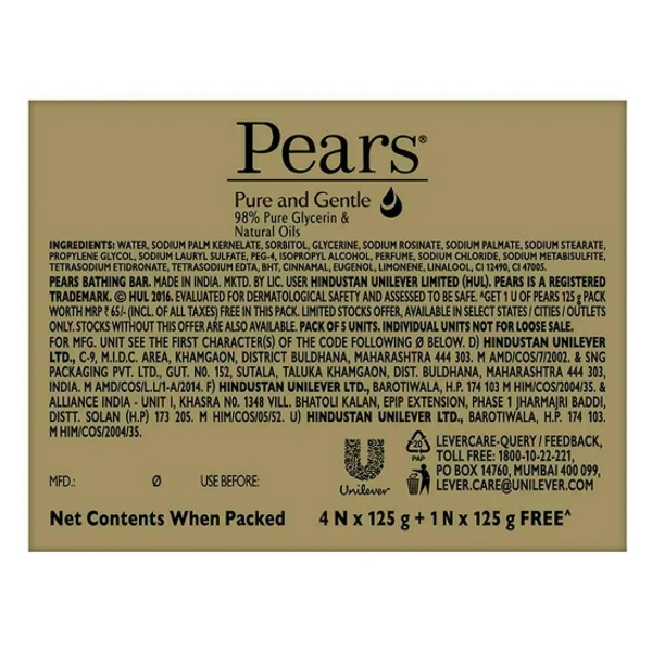 Pears Pure & Gentle Soap with Natural Oils 125 g (Buy 4 Get 1 Free)