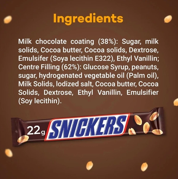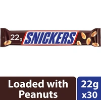 Snickers Peanut Filled Chocolate Bar Loaded with Nougat & Caramel, Pack of 30, 22g