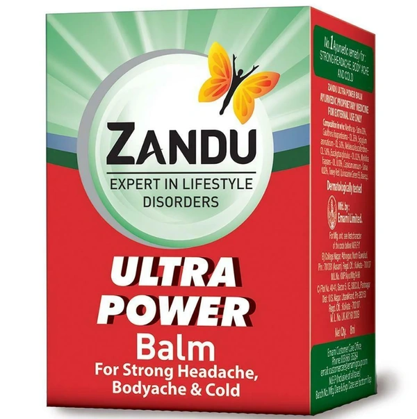 Zandu Ultra Power Balm for Strong Headache, Bodyache & Cold 8 ml